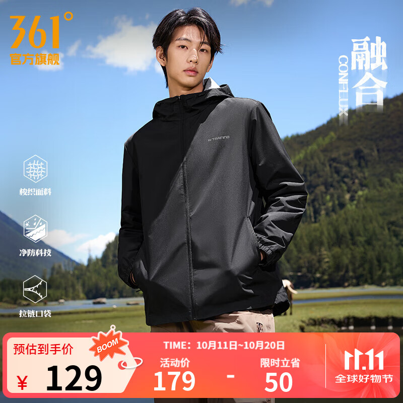 361°运动连帽夹克外套男2025年秋季防风防泼水户外冲锋男装休闲外套女 【推荐】超级黑 XL