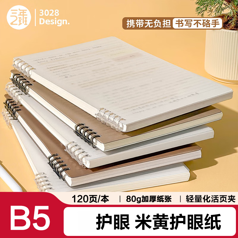 三年二班B5/60张横线不硌手活页本五孔PP软壳笔记本本子简约风初高中学生记事本错题本日记本横线 白色