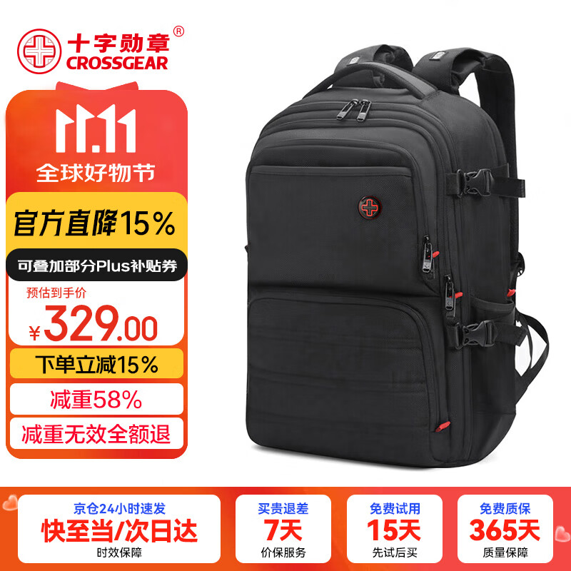 CROSSGEAR十字勋章减重大师双肩包17.3英寸电脑包大容量商务背包出差旅行包