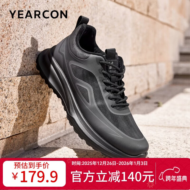 意尔康休闲鞋加绒保暖系带运动鞋百搭舒适平底单鞋男 97209W 黑色 43