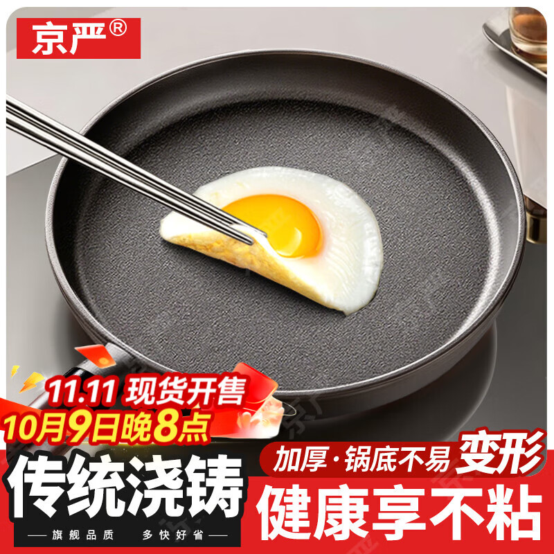 京严铸铁平底锅无涂层不粘锅家用煎炒锅牛排煎锅煎蛋早餐锅电磁炉燃气 【0涂层煎炒锅】适用2-3人 26cm 顺滑不粘 轻油少烟 轻松掂锅