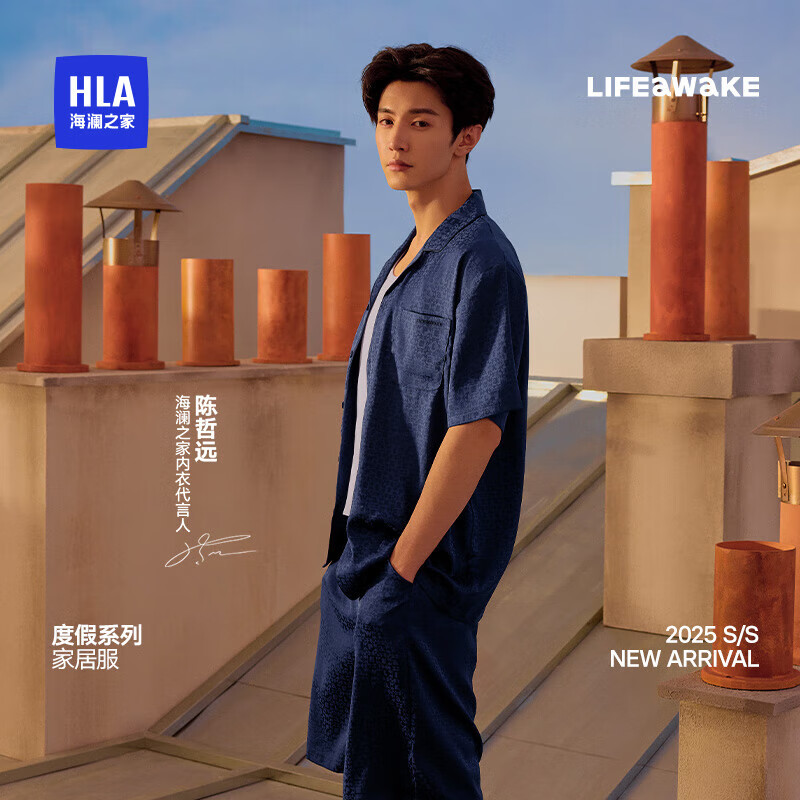 海澜之家【轻奢度假Air8】睡衣男女陈哲远同款新品冰丝凉感短袖短裤家居服