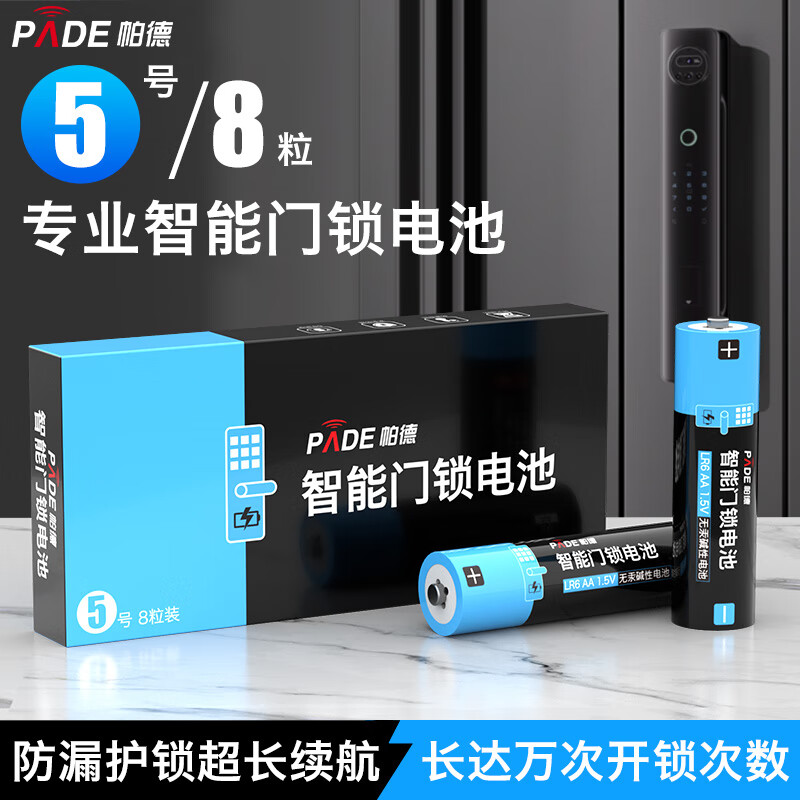 帕德(PADE)智能门锁电池5号8粒 适用于小米鹿客凯迪仕TCL德施曼鹿客华为海尔等电子门锁指纹锁密码锁