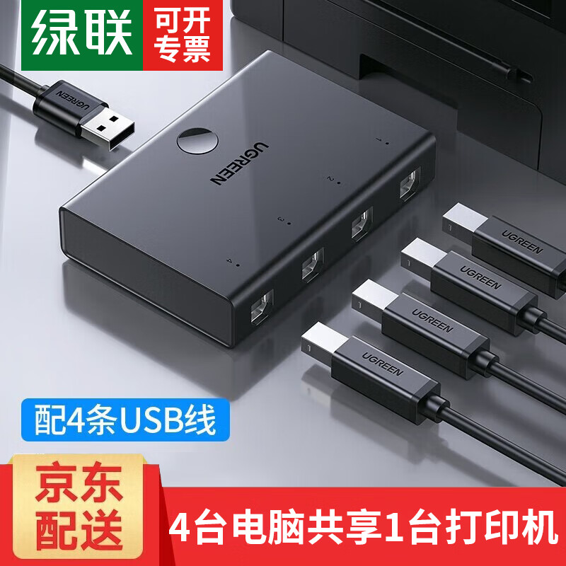 绿联USB打印机共享器分线器一分四 四进一出切换器 一拖二台式机笔记本电脑接鼠标键盘转换器一拖四 四进一出【打印机共享器】 30346