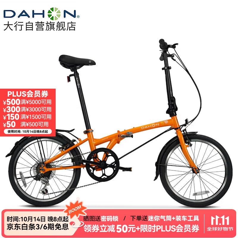 大行(DAHON)折叠自行车20英寸超轻6速通勤折叠单车HAT061 橙色