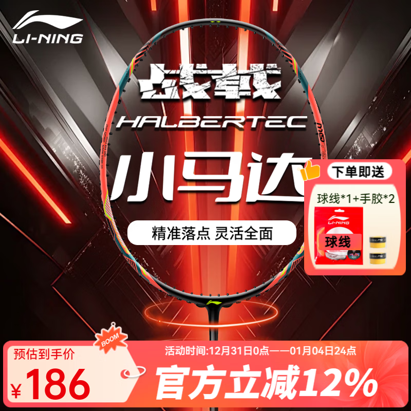 李宁新款正版羽毛球拍战戟小马达初学训练耐打控制拍全碳素情侣拍双打 4U 荧光粉(京仓直发,到货快) (已穿线)赠送手胶*1个