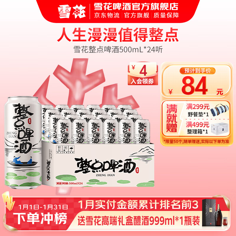 雪花啤酒 整点啤酒 500mL 24罐 整箱装