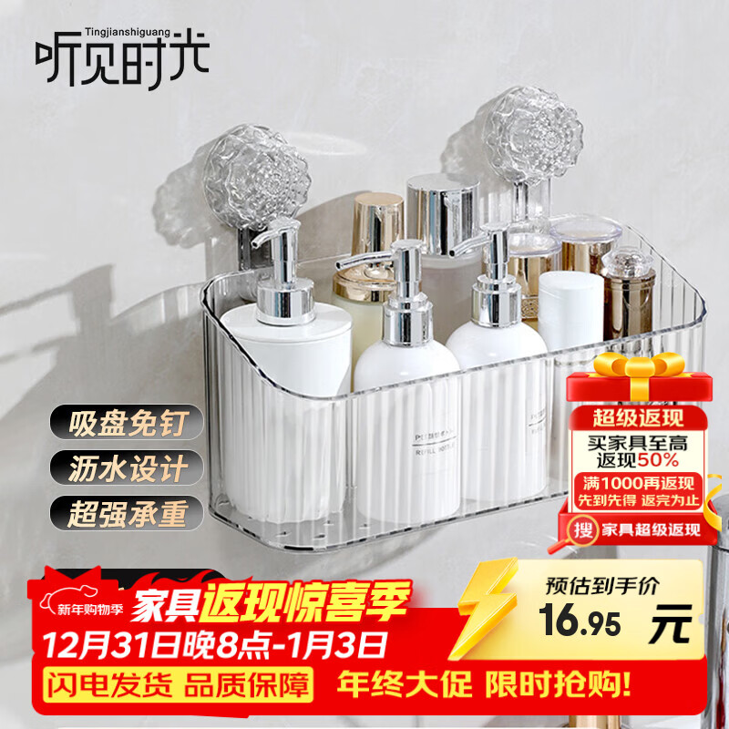 听见时光 吸盘置物架子卫生间厕所洗手洗漱台浴室免打孔挂墙上化妆品收纳