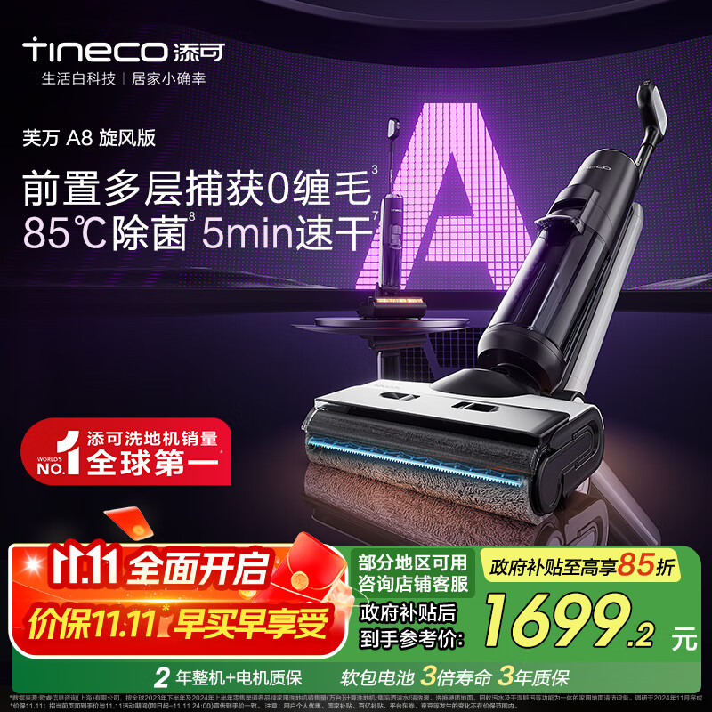 添可芙万A8旋风版 0缠毛高温速干洗地机 恒压活水自清洁家用吸尘扫拖一体机