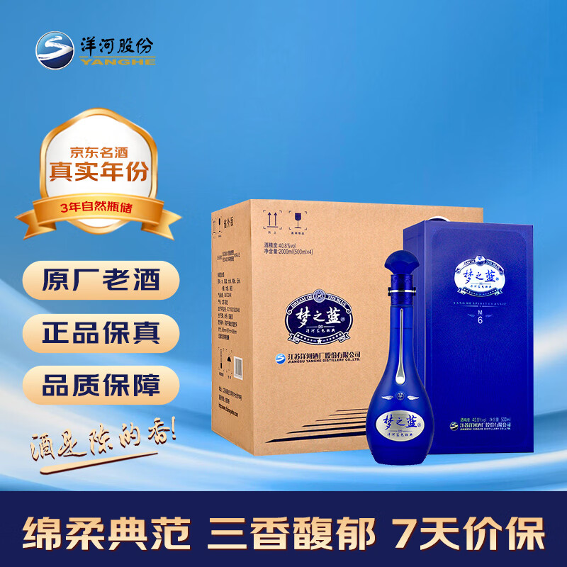 洋河 梦之蓝M6(梦6)2022年 绵柔浓香型白酒 40.8度 500ml*4瓶 整箱装 陈年老酒