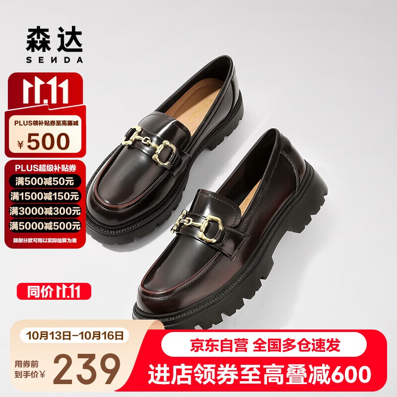森达乐福鞋女鞋厚底京东自营黑色舒适通勤上班单鞋SXN01AA4 酒红 35