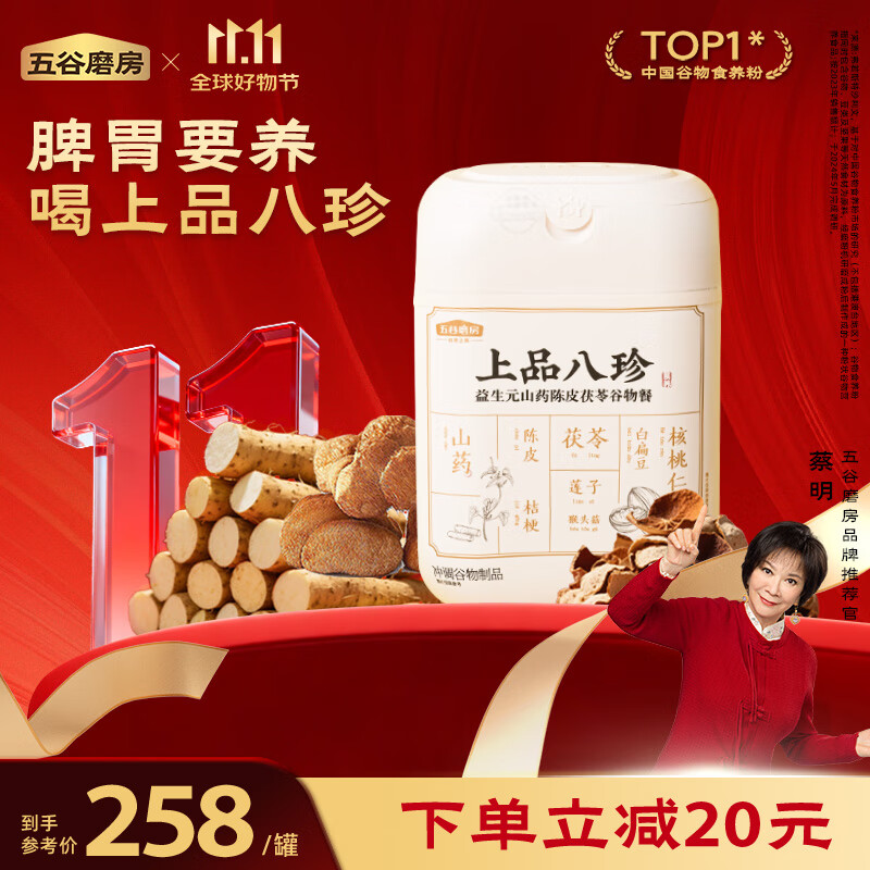 五谷磨房上品八珍粉益生元莲子茯苓陈皮猴头菇米糊山药粉呵护脾胃1100g