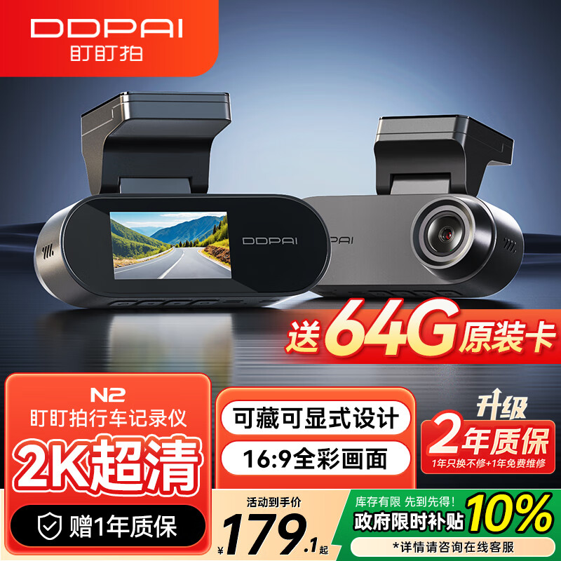 盯盯拍2K超清夜拍行车记录仪N2 断电可续拍 免走线隐藏安装 1.9英寸屏