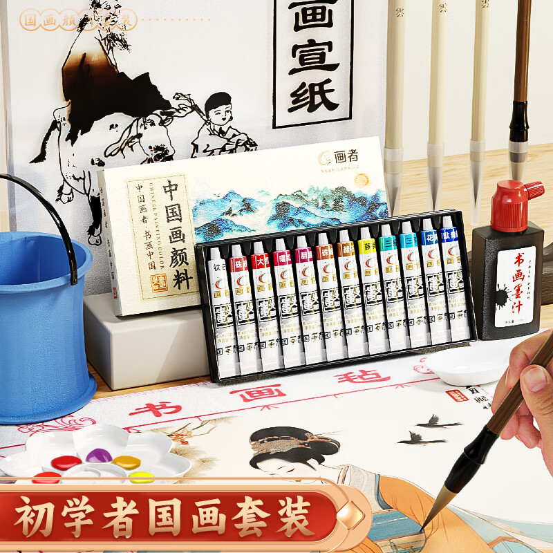 本忆12色国画套装国画颜料初学者套装中国画用品工具全套水墨画小学生儿童入门专业高级工笔画