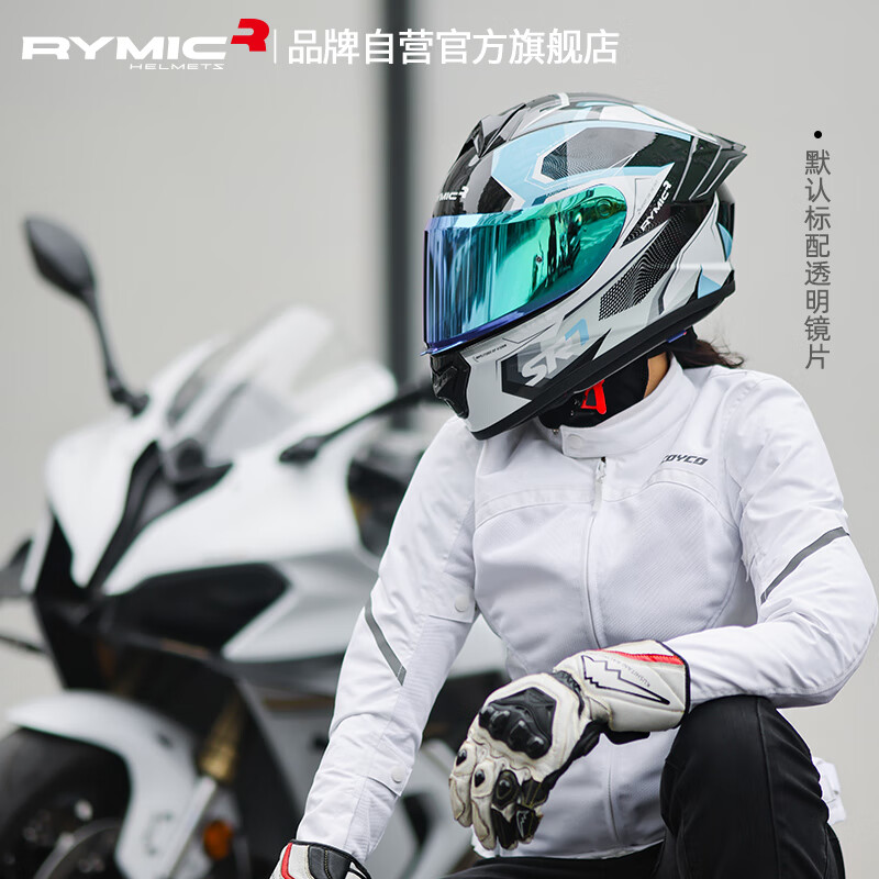 睿觅(RYMIC)摩托车头盔全盔3C认证专业机车骑行头盔四季男女977蓝灰飞刃3XL
