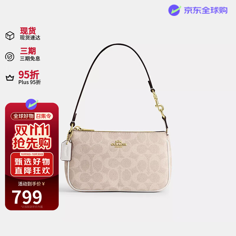 蔻驰(COACH)女包手拿提手拎麻将包奶茶拼白CW426 IMXDM 生日礼物
