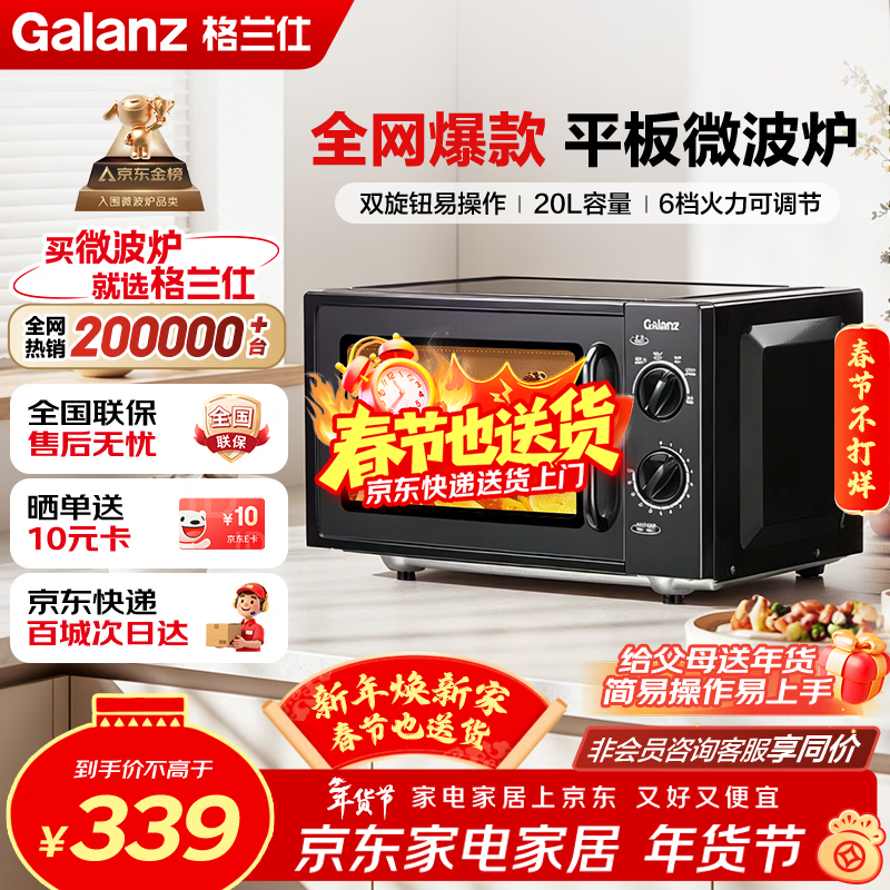 格兰仕(Galanz)微波炉家用20L容量 平板均匀加热 便捷操作小型 易清洁 微波炉 XB1【双旋钮操作平板式加热微波炉】