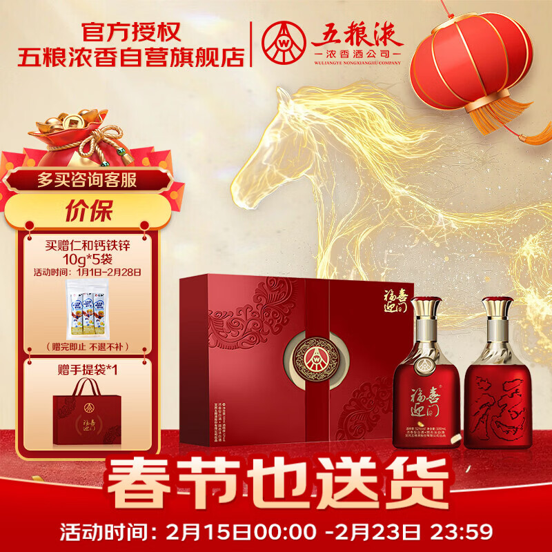 五粮液股份出品 福喜迎门 红福 浓香型白酒52度 500ml*2瓶 礼盒年货送礼