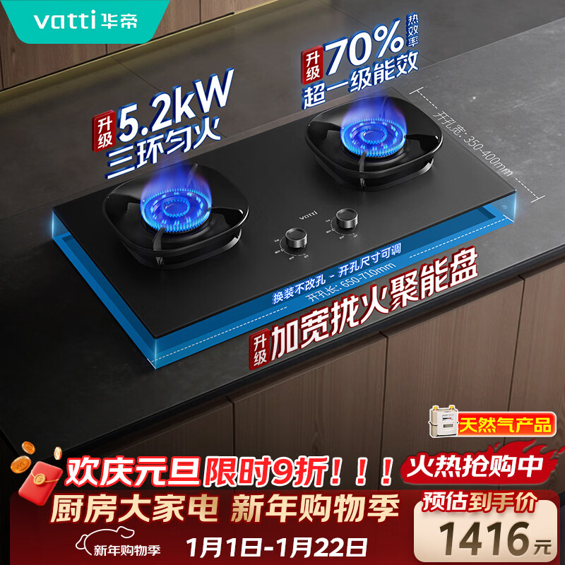华帝【升级70%热效率】燃气灶具天然气灶家用嵌入式5.2kW猛火灶以旧换新煤气灶双灶台i10308