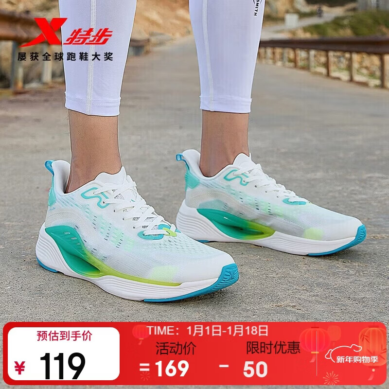 特步氢风5运动鞋跑步鞋男冬季透气网面跑鞋轻便缓震专业体测鞋子