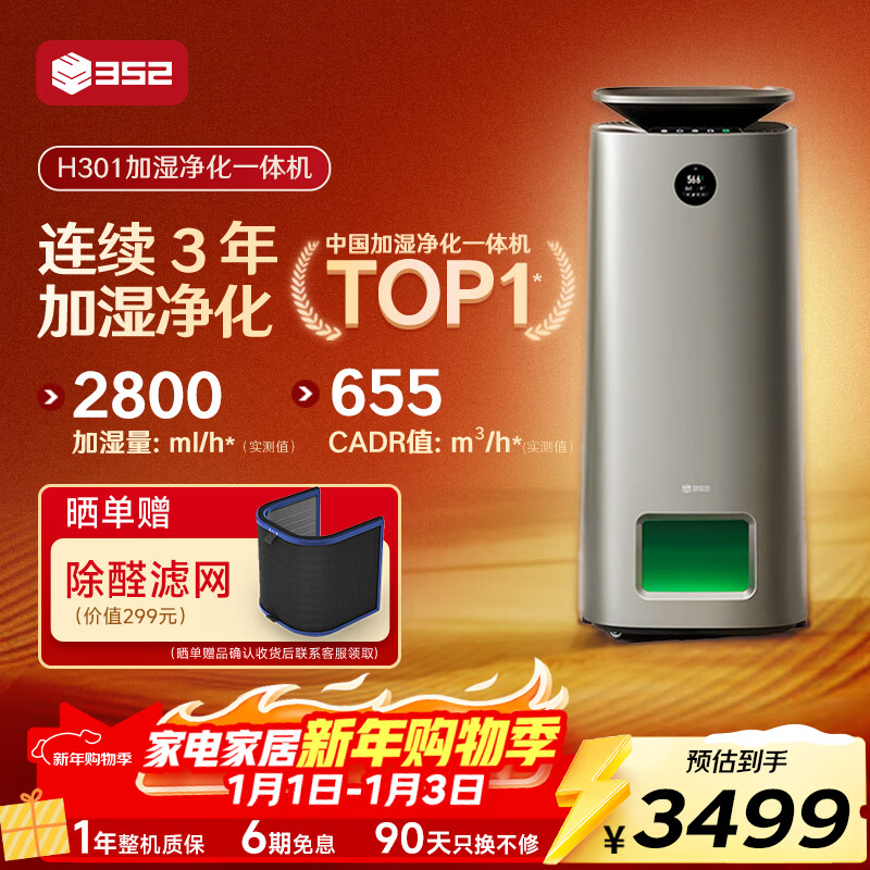 352【旗舰爆款】无雾加湿器空气净化器加湿净化一体机家用客厅卧室大面积静音除菌除甲醛过敏原 H301