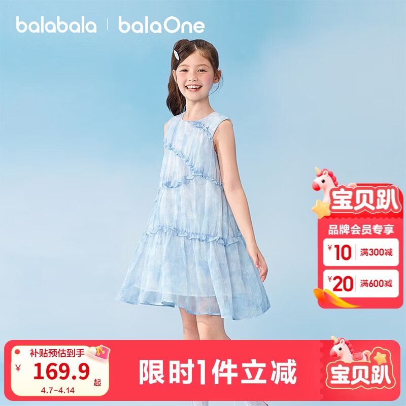 巴拉巴拉童装儿童裙子2026新款夏装女童无袖连衣裙中大童洋气时尚公主裙甜