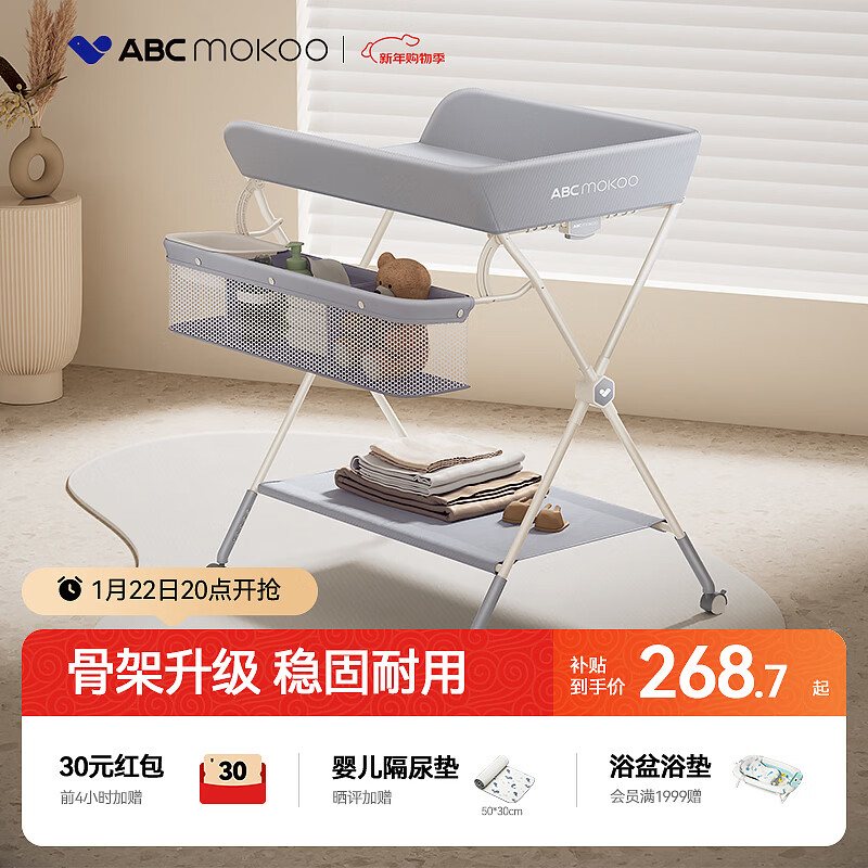 ABCMOKOO赛缇尿布台婴儿护理台新生儿换尿布多功能折叠-莫兰迪灰PROMAX款