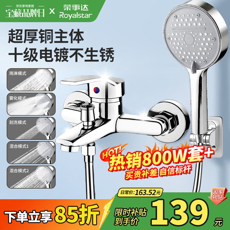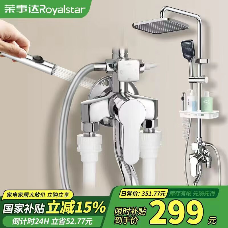 荣事达明装淋浴花洒套装 明管花洒 电镀 淋浴器 精铜淋浴龙头混水阀rs