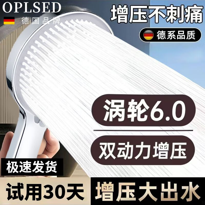 OPLSED【德国】大面板五档增压花洒淋浴家用加压单喷头银白色 OP-HS2001