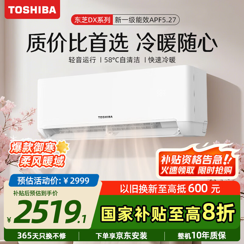 东芝(TOSHIBA)空调 大1.5匹 新1级能效 省电 变频冷暖卧室舒适风 壁挂机RAS-13TKVG1G4-C RAS-13TAVG1G4-C