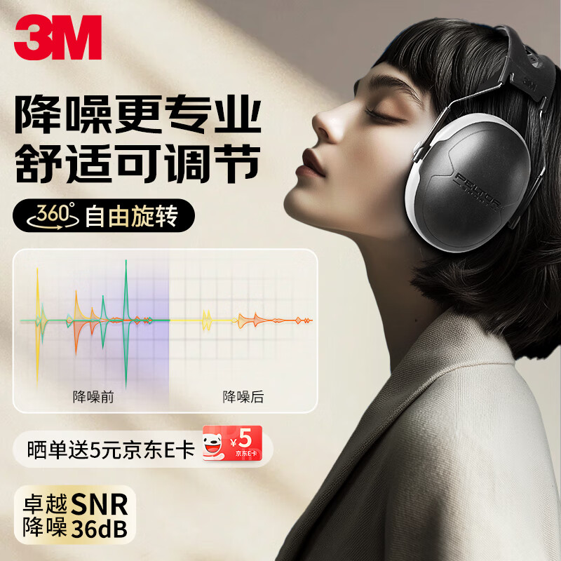 3M 隔音耳罩舒适降噪可折叠头戴式消音睡眠耳罩防噪音耳罩 97042