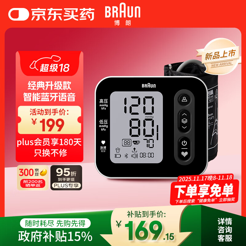 博朗(BRAUN)血压仪电子血压计老人医用高精准家用量血压测量仪器臂式BUA4060