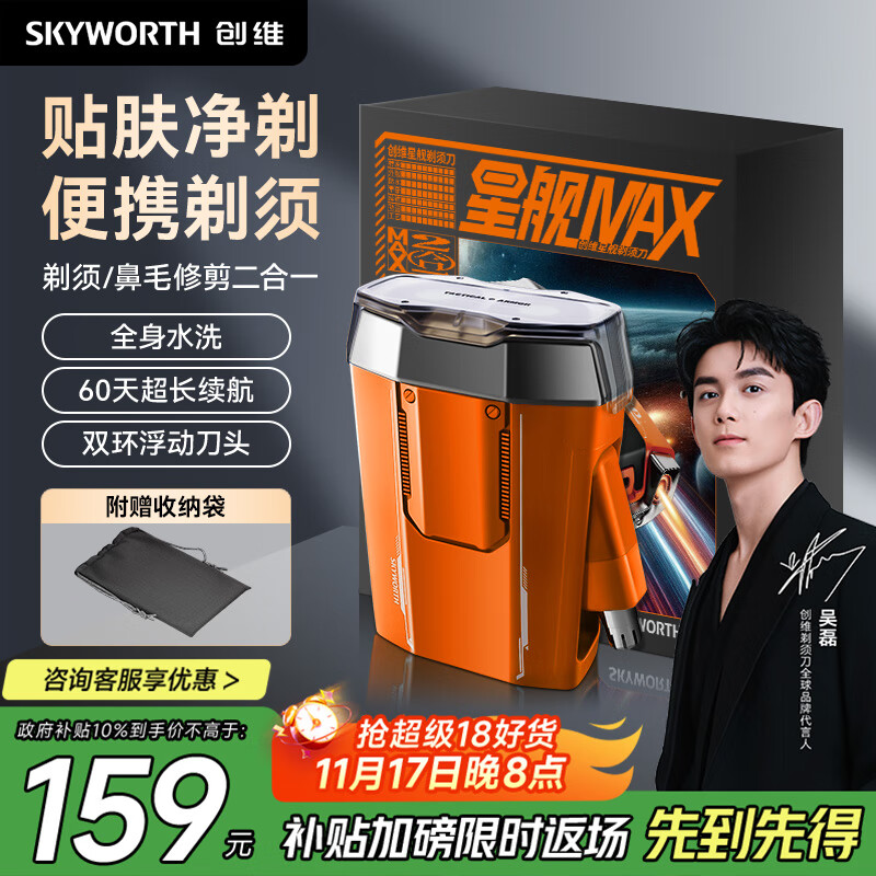 创维【吴磊同款】星舰剃须刀刮胡刀 电动男士迷你便携剃须刀小型刮胡刀剃须干净全身水洗送男友星际橙