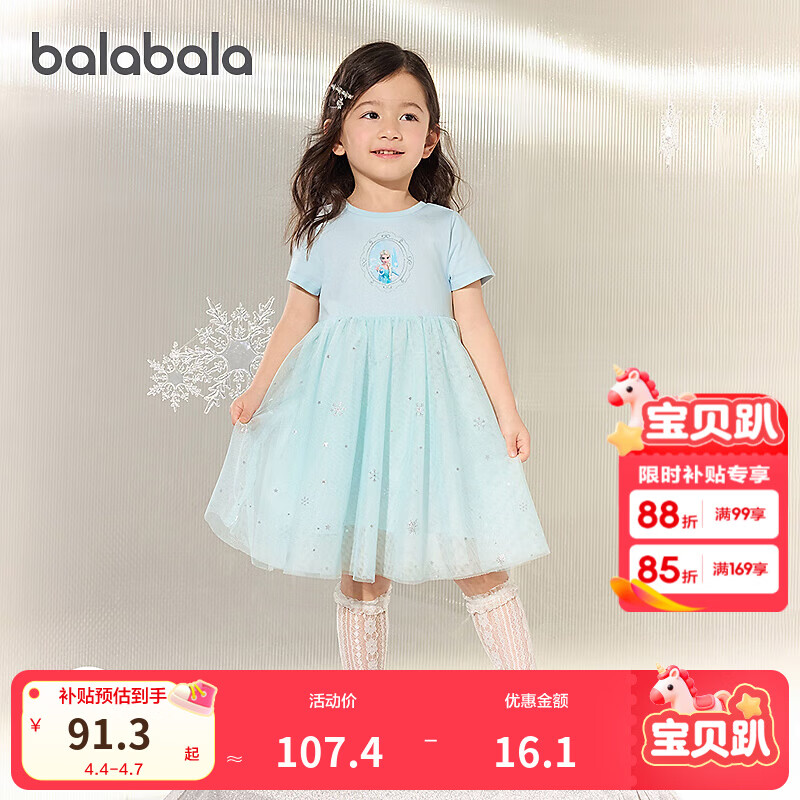 巴拉巴拉童装女童裙子儿童连衣裙爱莎公主裙夏装甜美艾莎网纱裙 蓝色调00388 100
