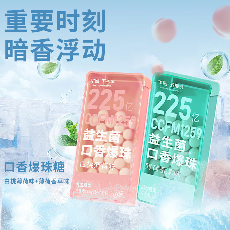华熙当康225亿益生菌 口香爆珠 爆珠口香糖 香草薄荷1盒