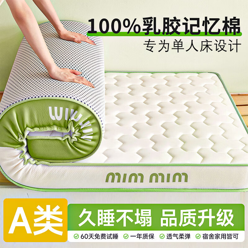 浪莎(langsha)记忆棉床垫单人床垫席梦思1米x2米榻榻米儿童零压软垫床褥子铺底 min-双拼-白绿【厚约6cm】 100cm*200cm【抗菌防螨 抗压防】