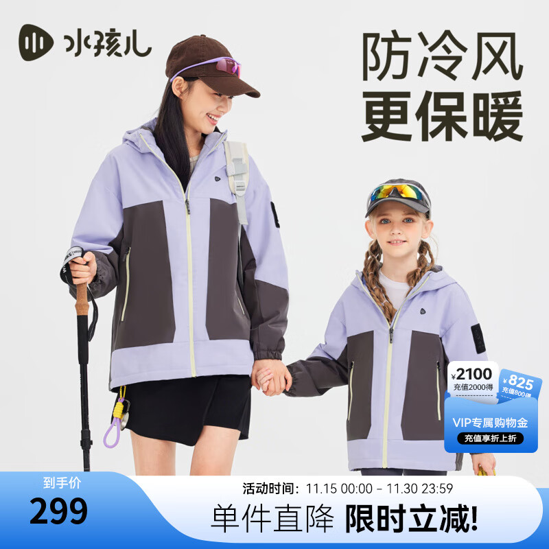 水孩儿(SOUHAIT)童装男童女童加绒厚外套2025秋冬季新款三防摇粒绒风衣百搭上衣 寒江紫SHTDND01CC703V38 150