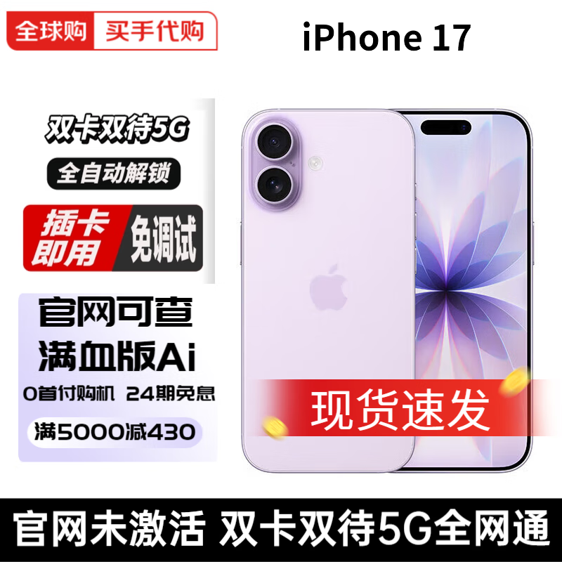 Apple【美版机】iPhone17 苹果17 5G双卡全网通美版有锁未激活后封 薰衣草紫色 256GB【未激活-双卡5G全网通】