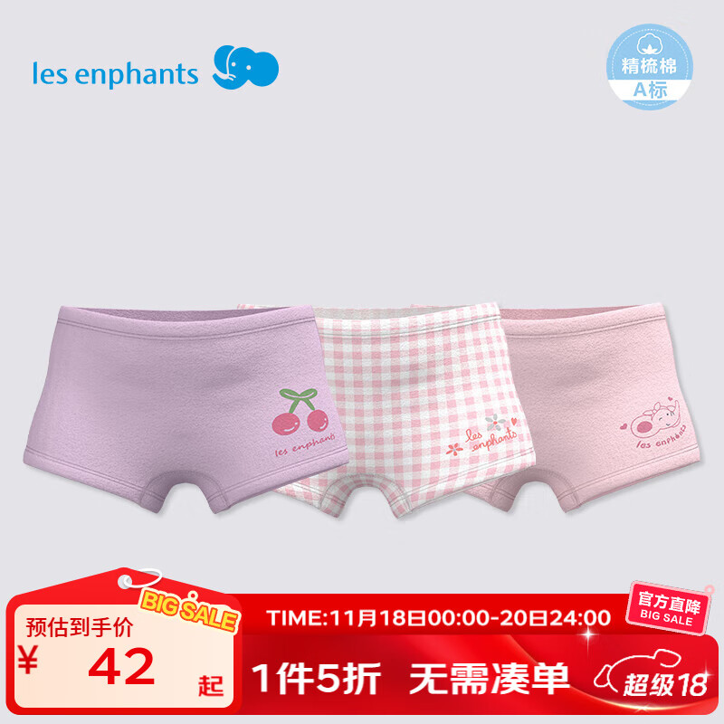 丽婴房儿童内裤纯棉内裤男女童内裤四角不夹PP中大童平角裤抗菌三条装 蝴蝶小象-女童(5A抗菌纯棉) 3条 150 CM/12岁