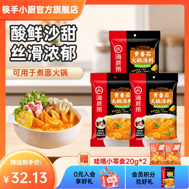 海底捞火锅底料汤料 牛油清油清汤番茄底料 麻辣香辣口味 一料多用 黄番茄火锅汤料220g*3