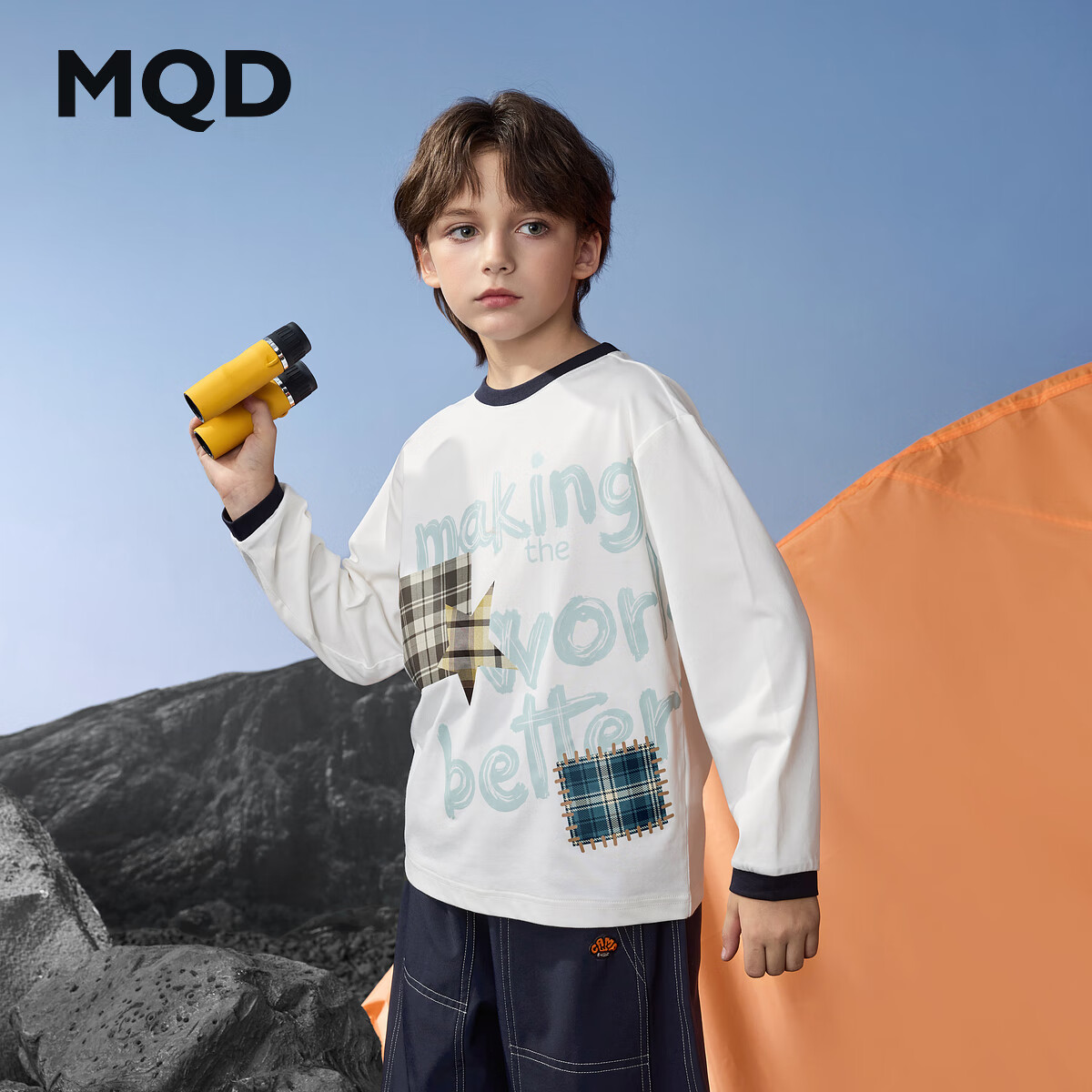马骑顿(MQD)男童25秋新款学院风街潮撞色领口卡通长袖T恤亲肤打底衫内搭 本白 120