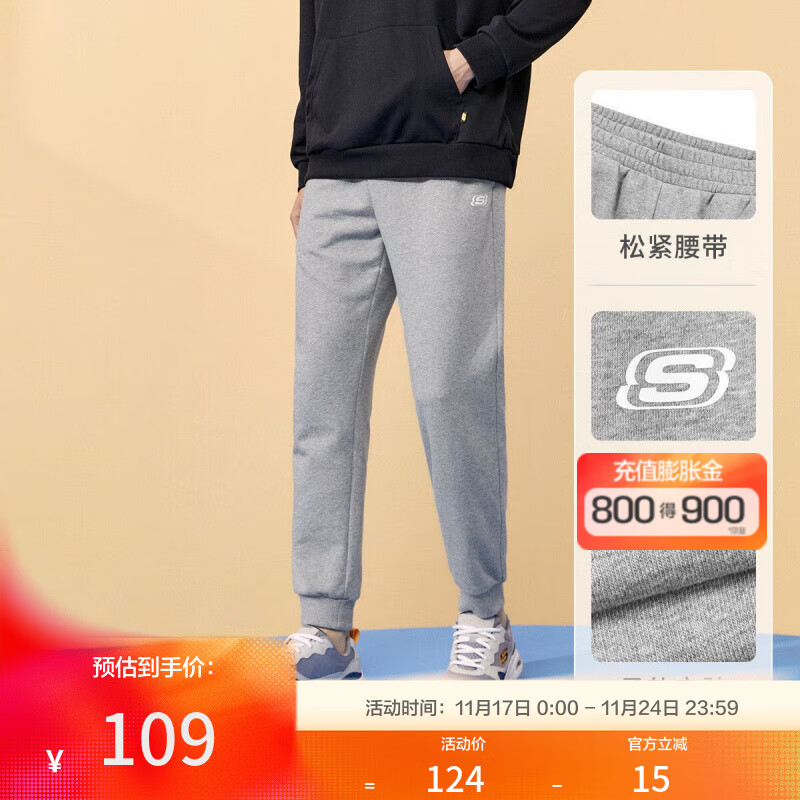 斯凯奇【舒适亲肤棉】运动裤男士长裤针织束脚裤卫裤尺码偏大夏季 中花灰/004F L