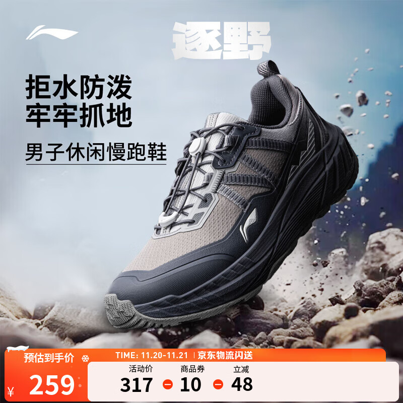 李宁逐野休闲越野跑慢跑鞋跑步鞋男子25秋冬季新款防泼水潮流运动跑鞋 瓦砾灰/冷檀黑-4 42