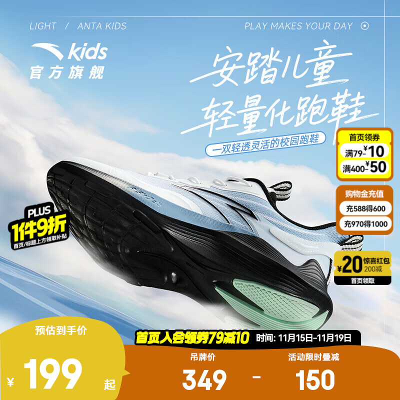 安踏儿童运动鞋男大童鞋25年秋季新款舒适网面轻量化学生跑鞋 安踏白/蒙尘蓝-4 34