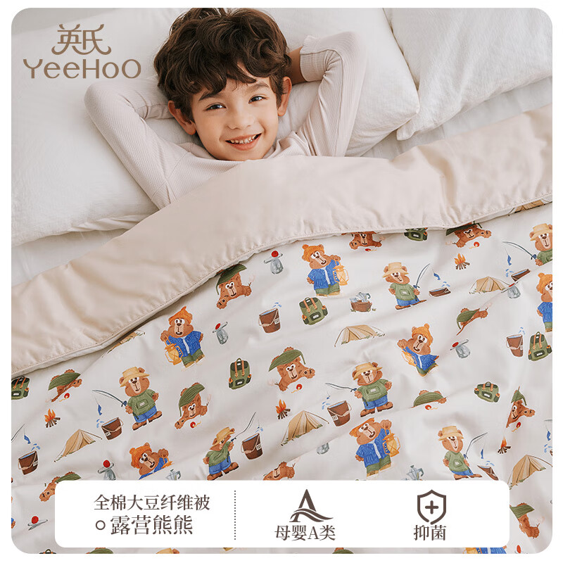 英氏春秋冬被全棉抗菌大豆纤维被可水洗婴幼儿童幼儿园被子 露营熊熊 120*150cm
