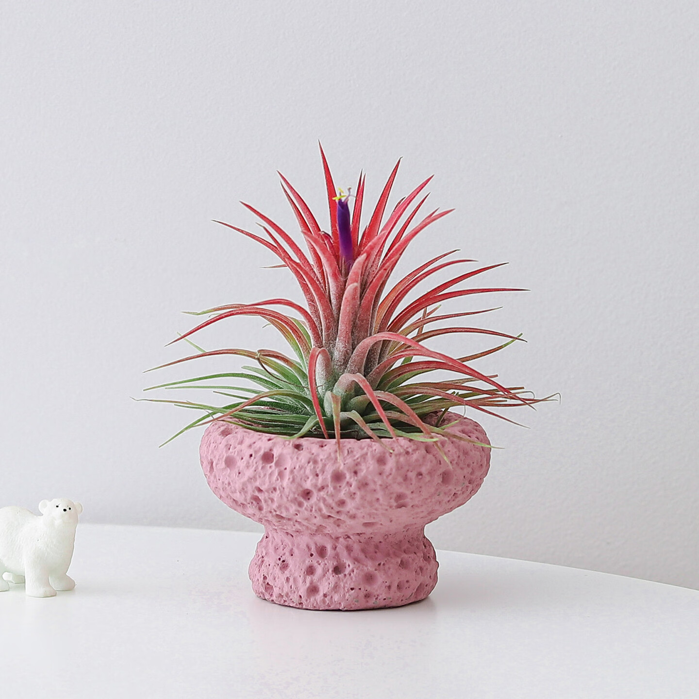 喜鹊说空气凤梨办公室桌面绿植室内小盆栽植物好养四季懒人情绪稳定花卉 红精灵-粉火山飞碟盆 含盆
