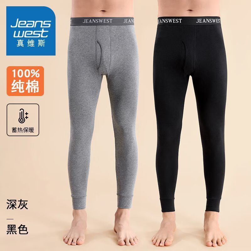 真维斯男士秋裤男款保暖裤100%纯棉全棉薄款打底裤毛线裤宽松春秋 深灰+黑色【100%全棉保暖】 2XL 130-150斤
