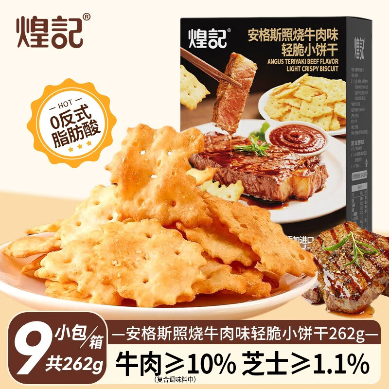 煌记轻脆小饼干鳕鱼芥末味零食薄饼牛肉味孕妇小零食薄脆手提礼盒送礼 照烧牛肉味-9小包/箱(262g)