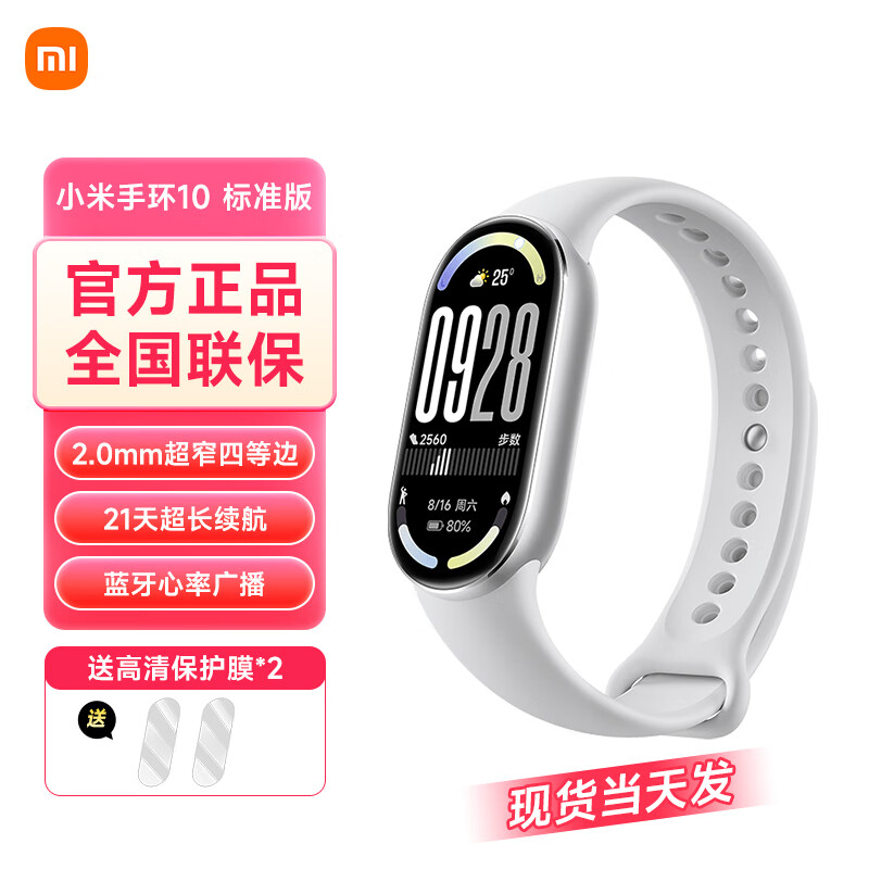 小米手环10/10NFC版 专业运动健康 智能手环 监测睡眠管理 心率血氧长续航运动 5ATM防水 男女运动手环 标准版 银色【送高清膜*2】