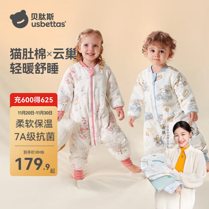 贝肽斯睡袋婴儿春秋冬季儿童宝宝3-6岁纯棉分腿式防踢被保暖惊跳连体衣 森趣牧歌【秋冬中厚 10-20°C】猫肚棉 XL码 建议身高100-120cm建议3.5-5岁
